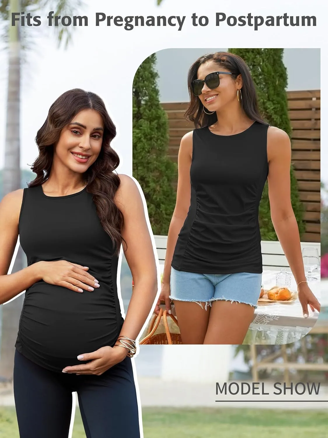 The side ruching not only flatters but grows with your bump, transforming the way you perceive maternity fashion. Say goodbye to frantic shopping sprees, as this tank’s crew neck and wide straps deliver comfort and coverage, allowing you to focus on what truly matters—your journey of creating life.