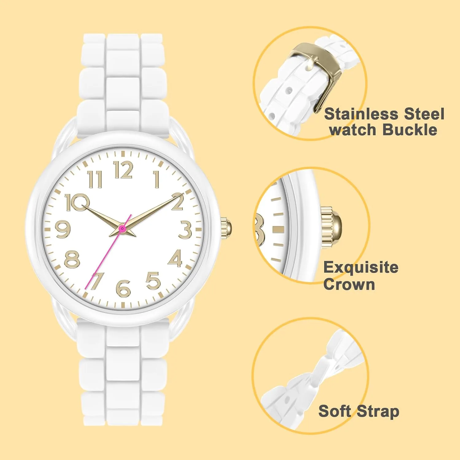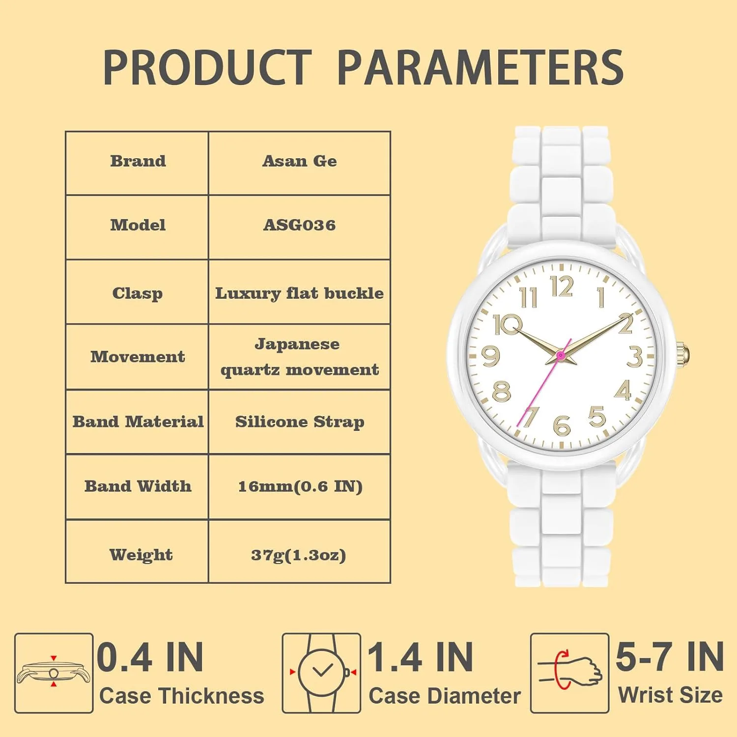 Envision a watch that seamlessly melds practical features with chic aesthetics. The 36MM Women’s Watch is crafted with a large face and bold Arabic numerals, ensuring that it’s not only easy to read at a glance but also an accessory that complements any outfit effortlessly. Its 3 ATM water resistance offers peace of mind for those impromptu showers or spontaneous dips in the pool. The silicone band is not only soft and comfortable but designed to rest snugly on wrists of all sizes, embracing your skin like a gentle warmth throughout the day.